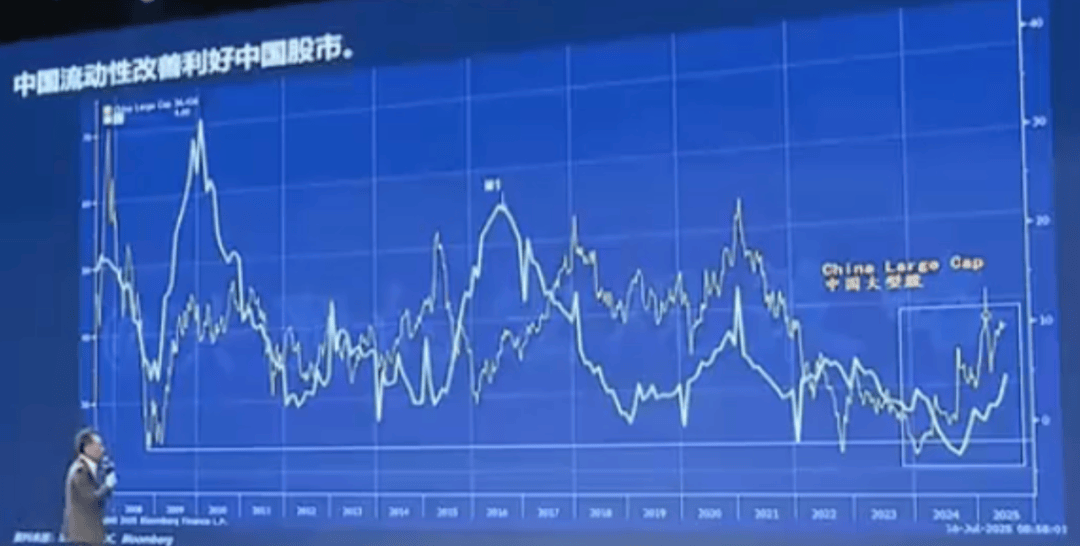 我们看一下白色的线是我们的M1,就是狭义的货币供应。