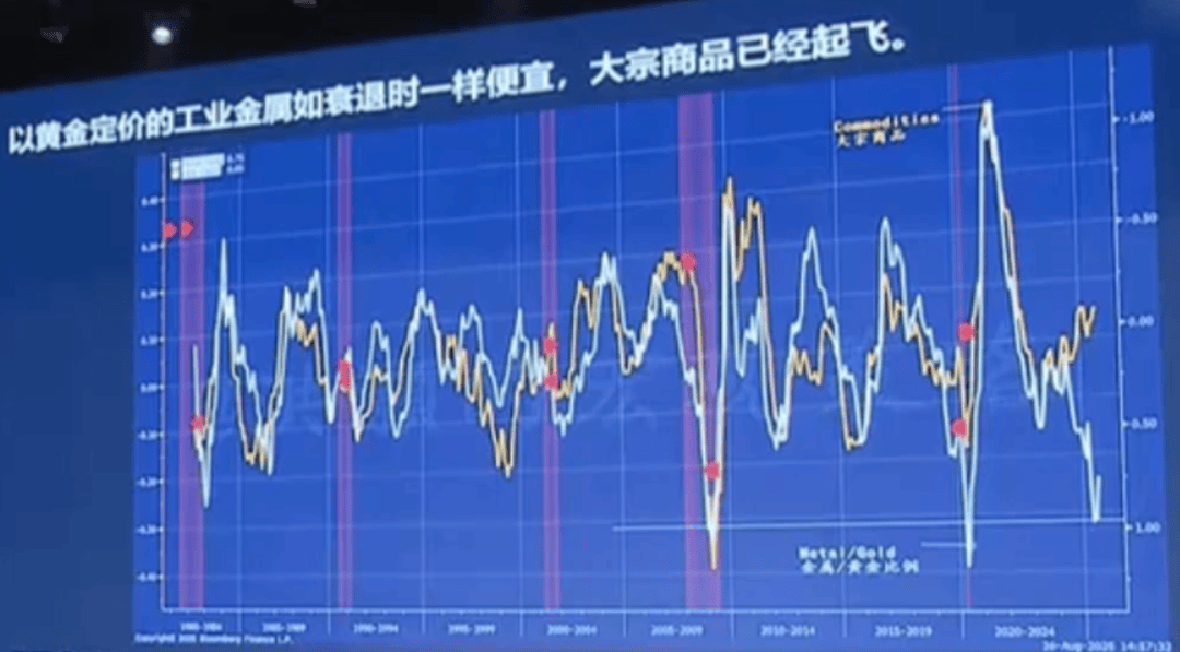 白色的线,就是我们用黄金定价的工业金属的价格,各位看一下非常有意思,
